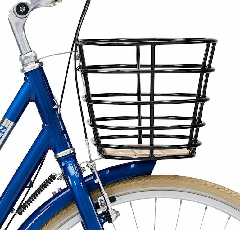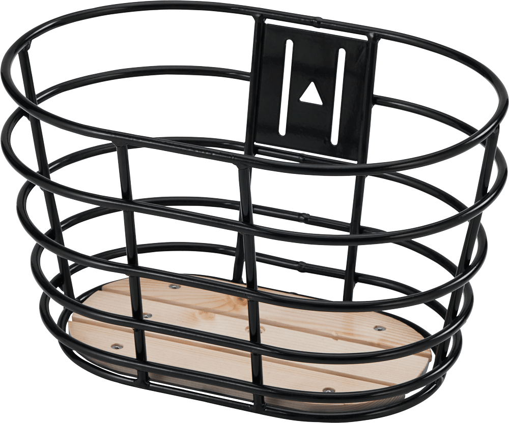 Sort front kurv i aluminium med træbund.
