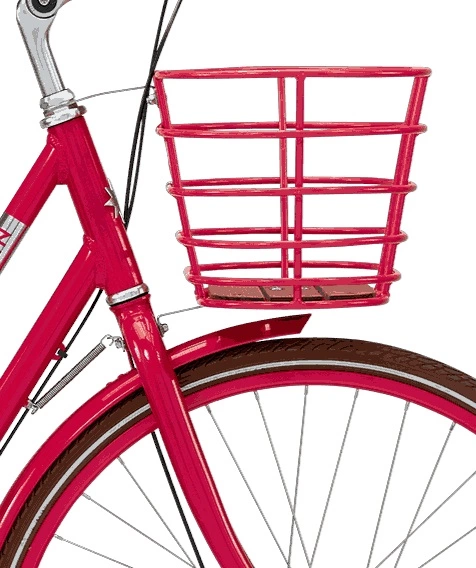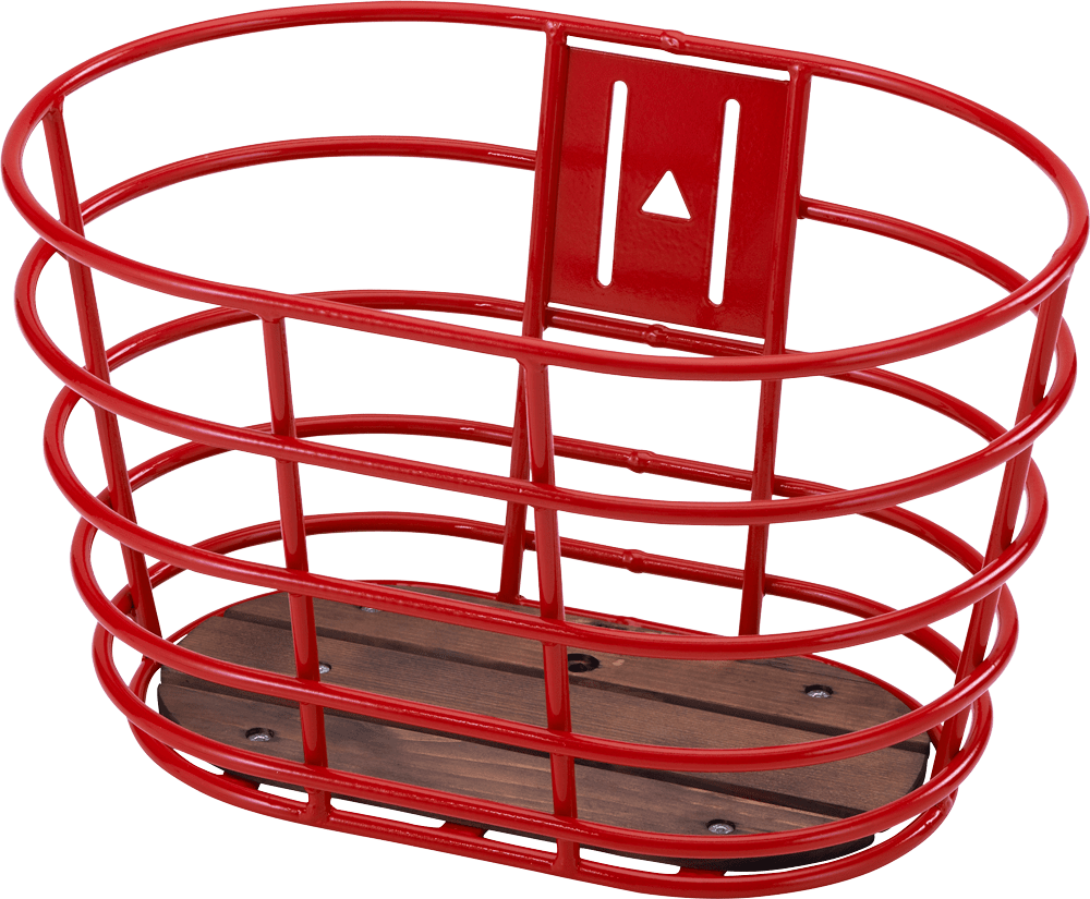 Rød front kurv i aluminium med træbund.