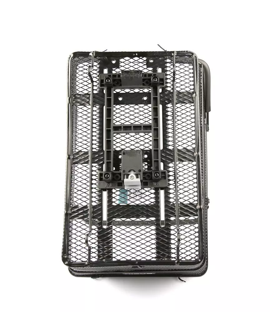 Bagkurv i aluminium som er vejrbestandig og nem at tage af og på.