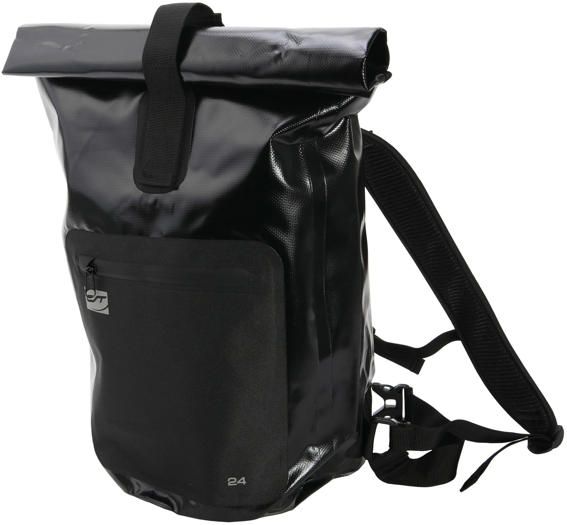 Tasken er vandtæt og lavet i et mix af tarpaulin og polyester.