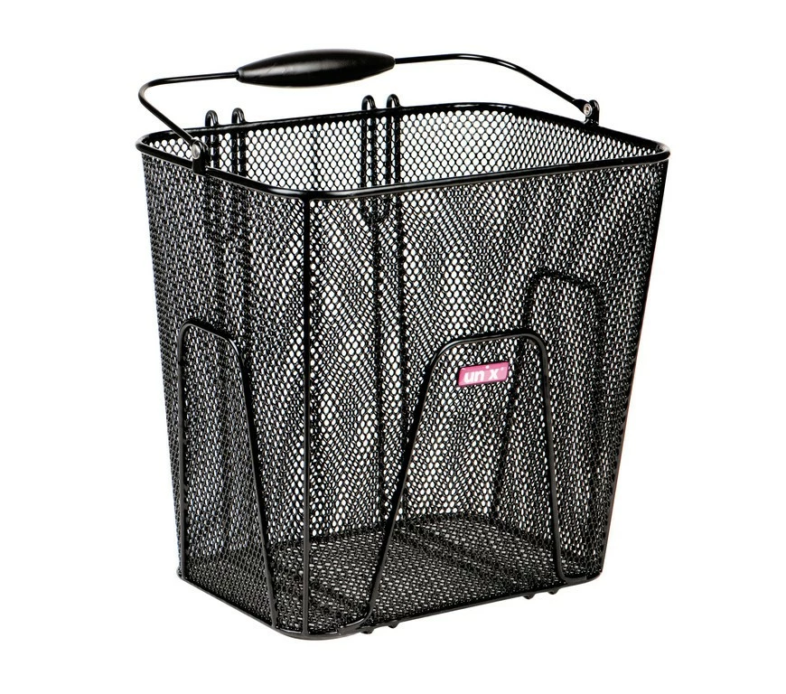 Cykelkurv med hank og kroge til montering på bagagebærer/lad.