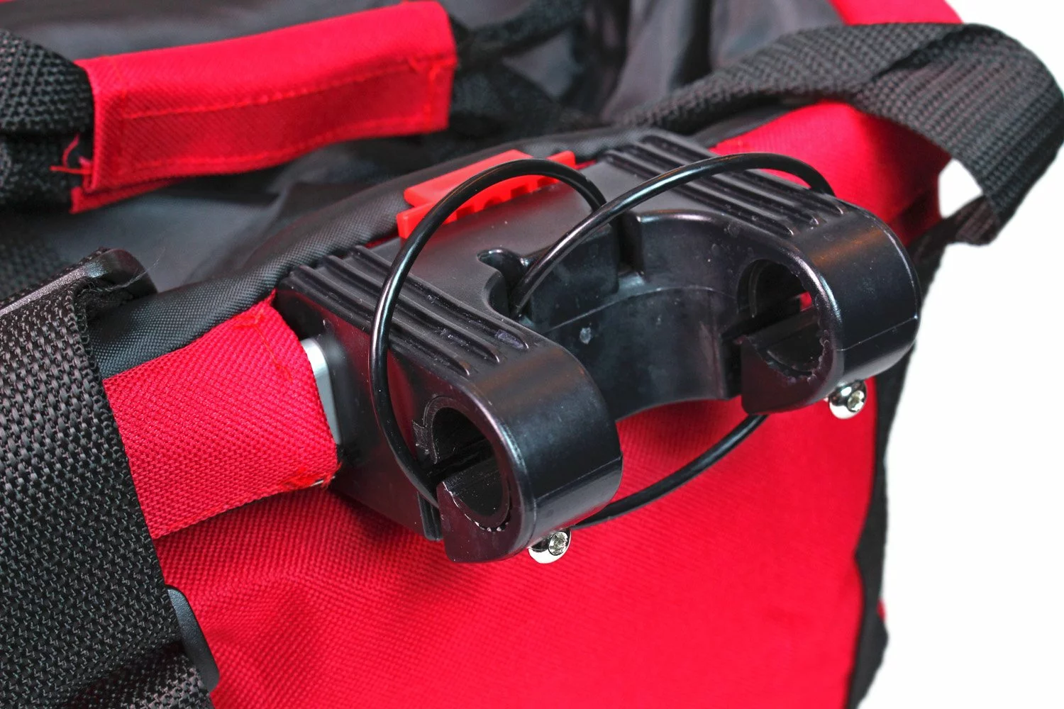 Det medfølgende beslag monteres på styret hvorefter tasken er let af sætte på eller tage af.