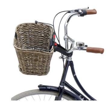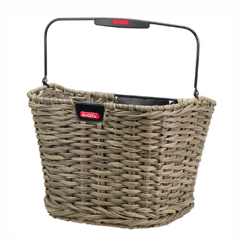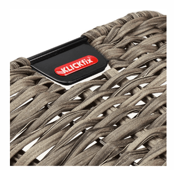 Smuk flettet håndtagskurv fra KLICKfix lavet i vejrfaste plastremme, der gør kurven modstandsdygtig overfor regn, blæst og sollys.