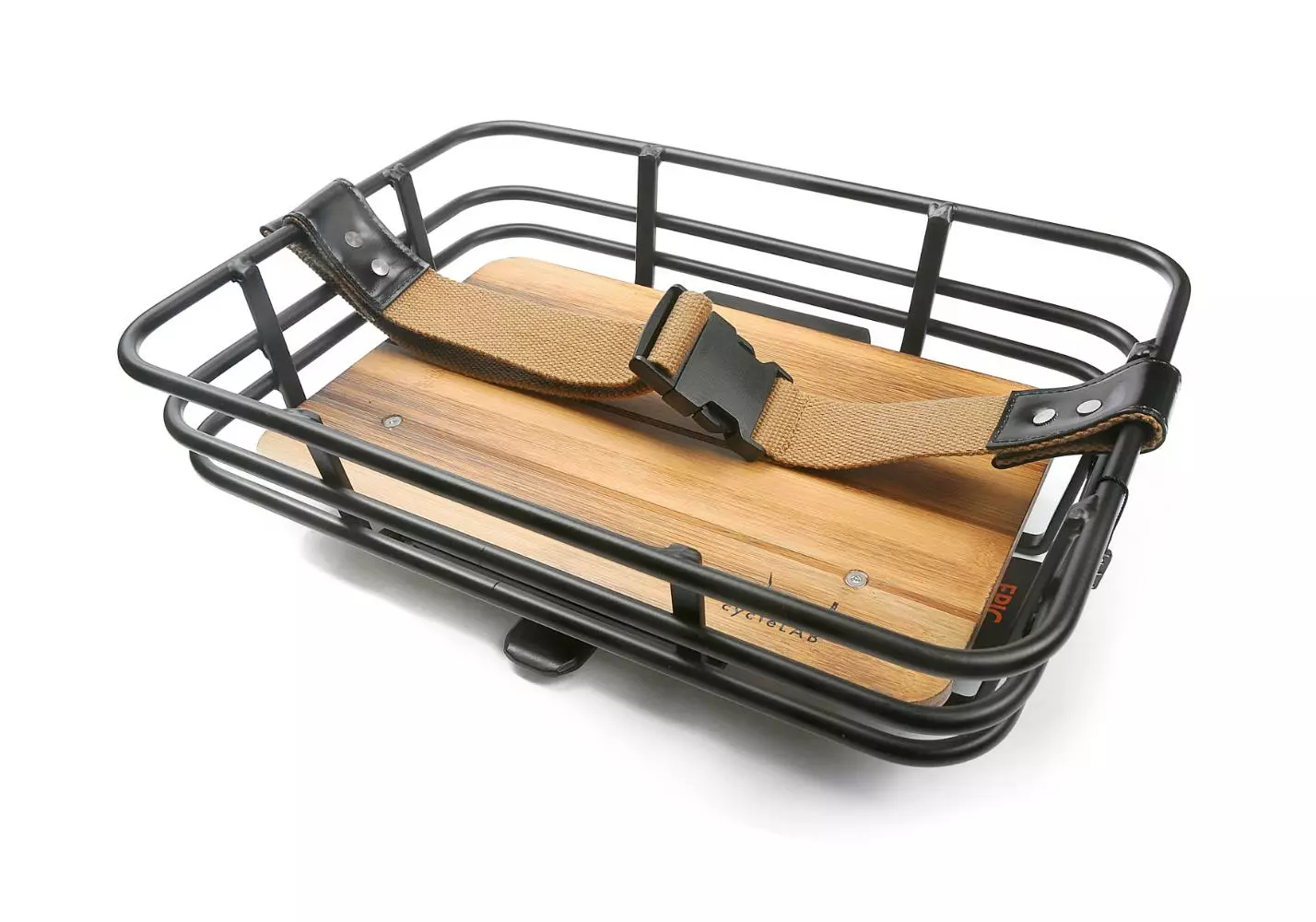Kurven er udstyret med lave kanter, men dertil også en strap, der går over midten, for at holde baggagen på plads.