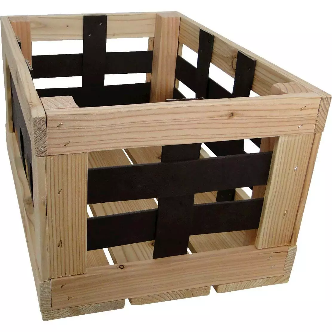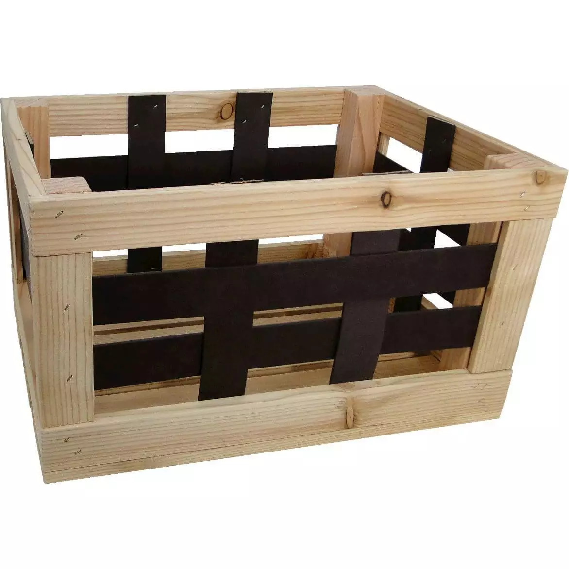 Lavet i ubehandlet grantræ med gitterstropper i kunstlæder.