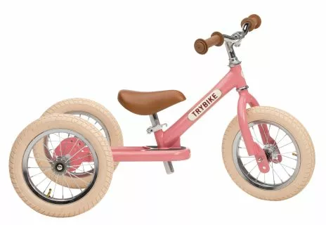Trehjulet løbecykel i metal fra Trybike. Designet i retro look med brun sadel og store sorte gummihjul for optimal balance. Cyklen udmærker sig ved at hjælpe barnet med at træne balance og fornemmelse for egen krop. Forhjulet kan justeres i 2 højder og sadlen kan justeres fra 30-45 cm. Løbecyklen med tre hjul kan tilpasses så barn mellem 15 måneder og 5 år kan benytte den. Balance / løbecyklen er en god start på livet for den lille cyklist og går for mange børn forud for cyklen med pedaler.